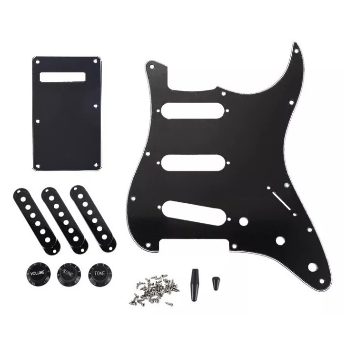 Kit Escudo Para Guitarra Stratocaster Modelo SSS + Placa traseira + Parafusos, Padrão Fender Americana/Mexicana ou Similares