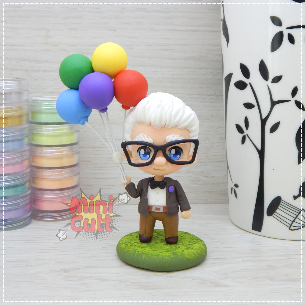 Mini Toy Sr. Fredricksen com balões - Up! Altas Aventuras - Miniatura Colecionável artesanal em biscuit/porcelana fria