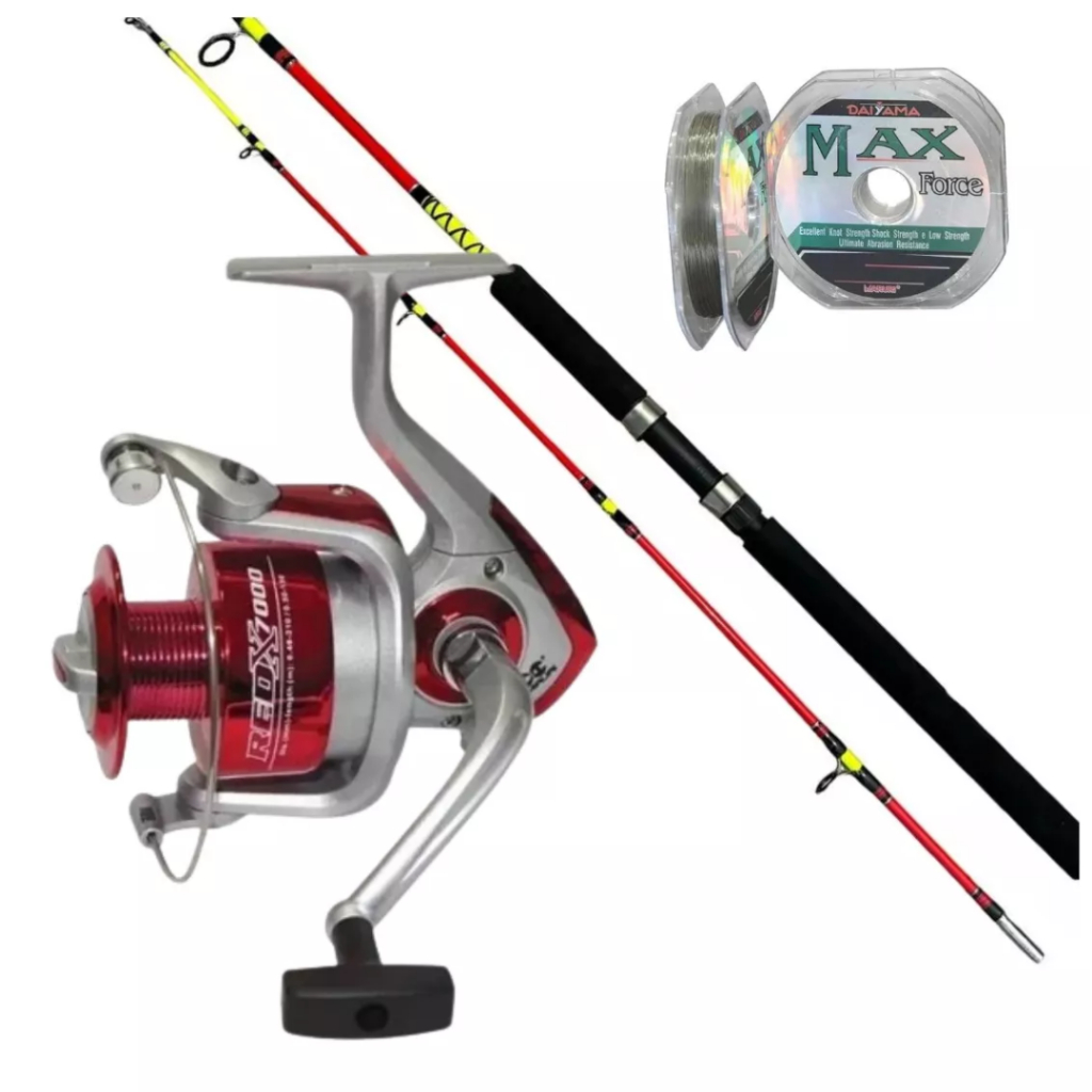 Kit Pesca Pesada Molinete Maruri REDX 7000 + Vara Ottoni Capitan 1,95m 40-80 LBS + Linha Max Force Monofilamento