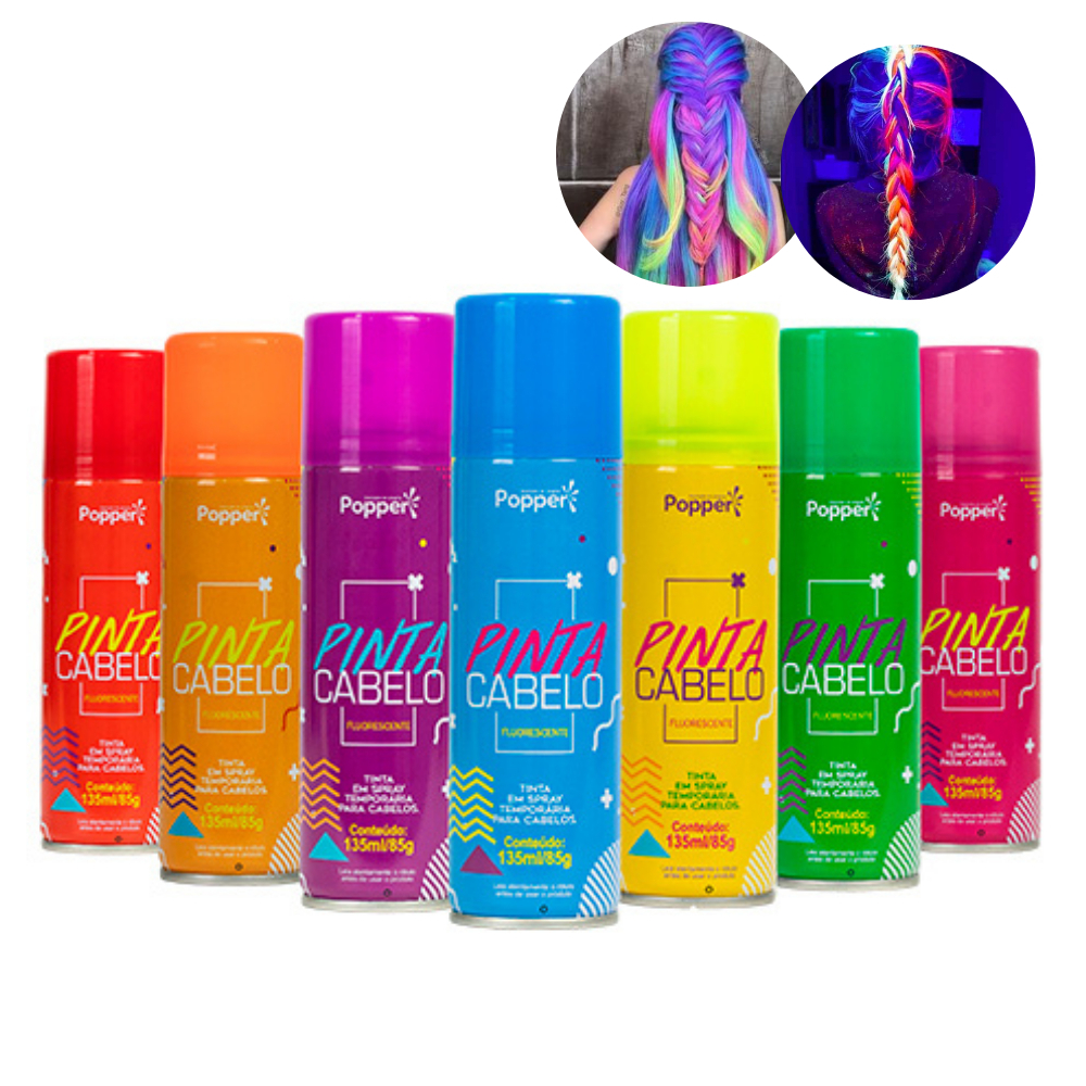 Tinta da Popper Temporária Para Cabelo e Barba Carnaval - 135ml Tinta Fluorescente Spray Envio Imediato
