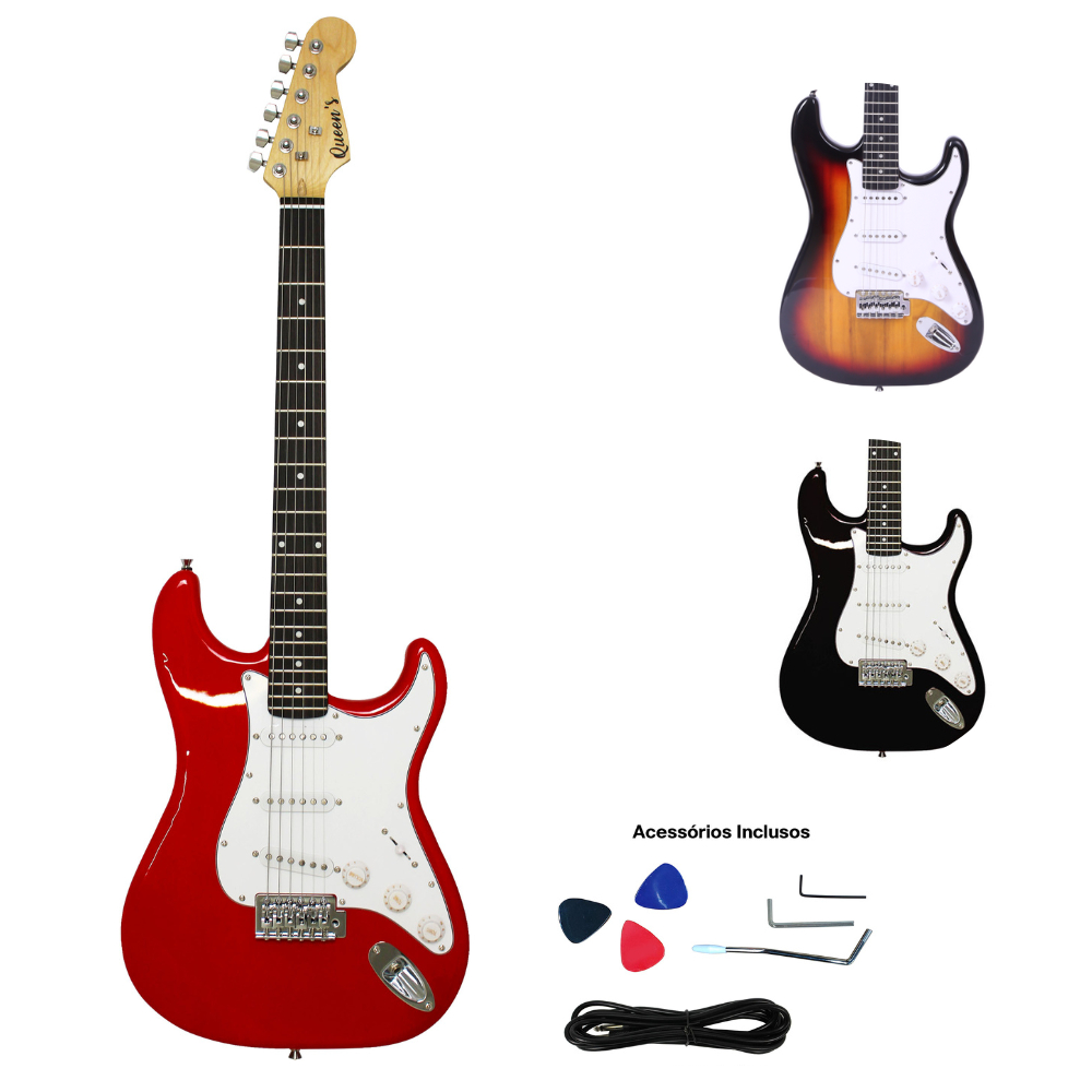 Guitarra Elétrica Stratocaster Queen's 6 Cordas P10 para o amplificador