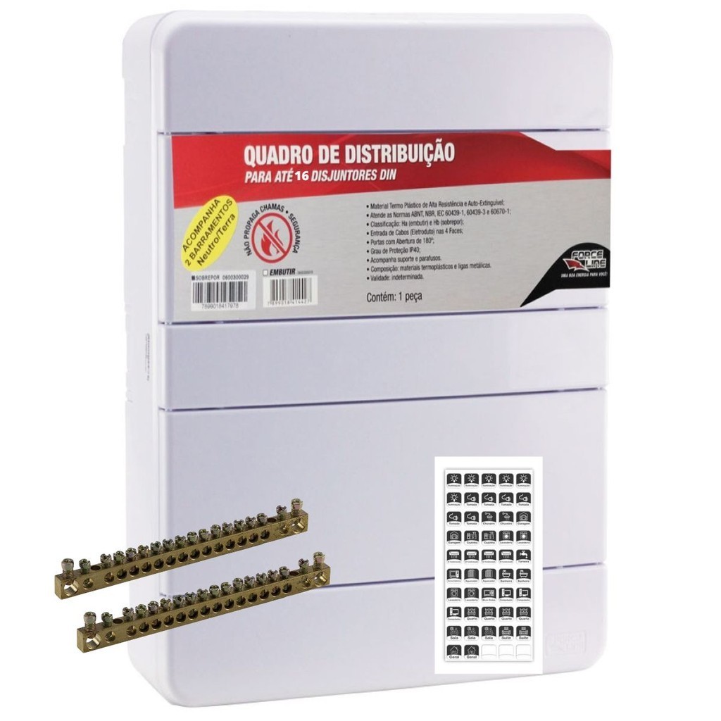 Quadro Distribuição Sobrepor Force Line até 16 Disjuntores com Barramento Branco Caixa Centrinho Elétrico de Energia Residencial