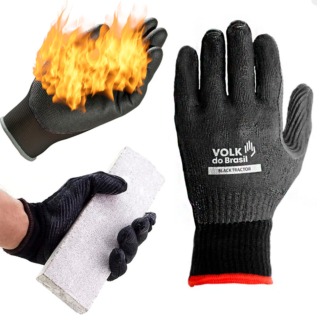 Luva Térmica Alta Temperatura Anticorte Black Tractor Volk Até 250°c Proteção Segurança Epi Com CA