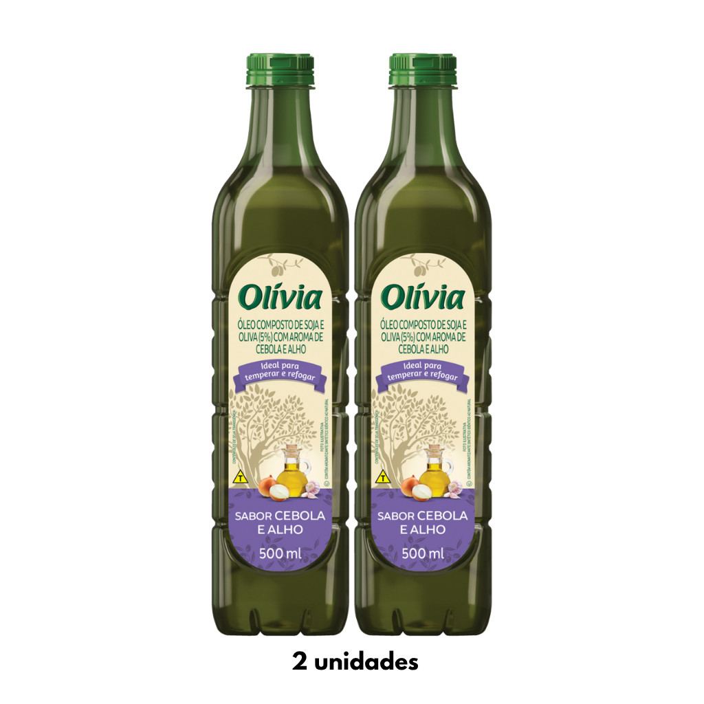 Kit Óleo Composto de Soja e Oliva Cebola e Alho Olívia Garrafa 500ml | 2 Un