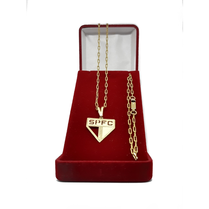 Kit Completo Corrente + Pulseira Pingente São Paulo FC Escudo Masculino Dourado Aço Inoxidavel