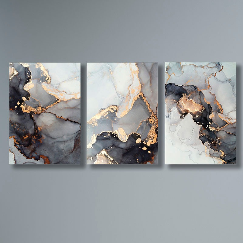 Kit de 3 Quadros Decorativos Para Sala Quarto Abstrato Efeito Mármore