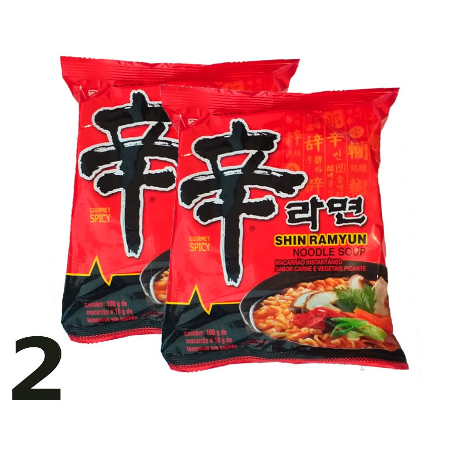 Kit 2 Un Lamen Coreano Macarrão Shin Ramyun Picante Carne e Vegetais 100g - Nature Alimentos