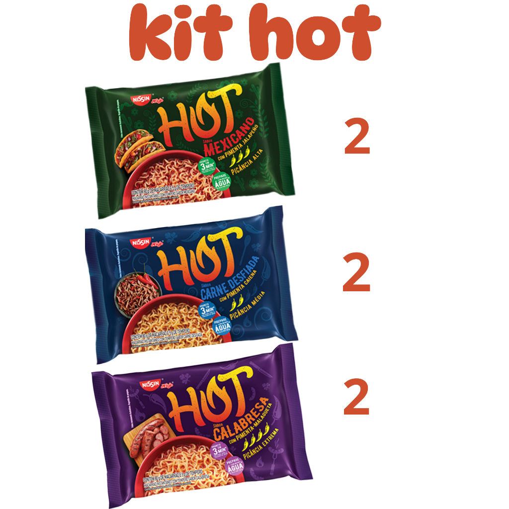 kit 6 unidades hot nissin lamen miojo - 2 pacotes de cada macarrão Instantâneo