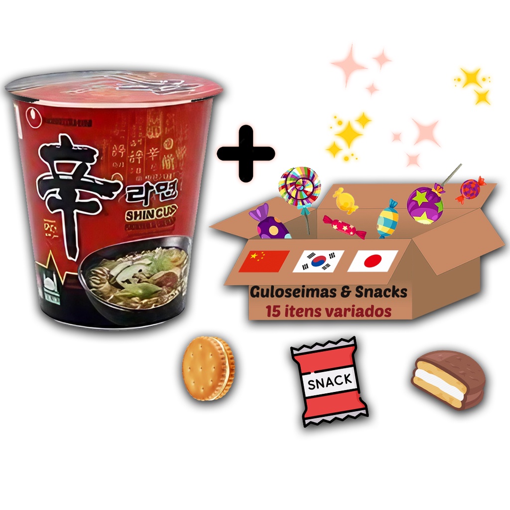 Kit Miojo Shin Ramyun Lamen Coreano 68g e 15 doces asiáticos