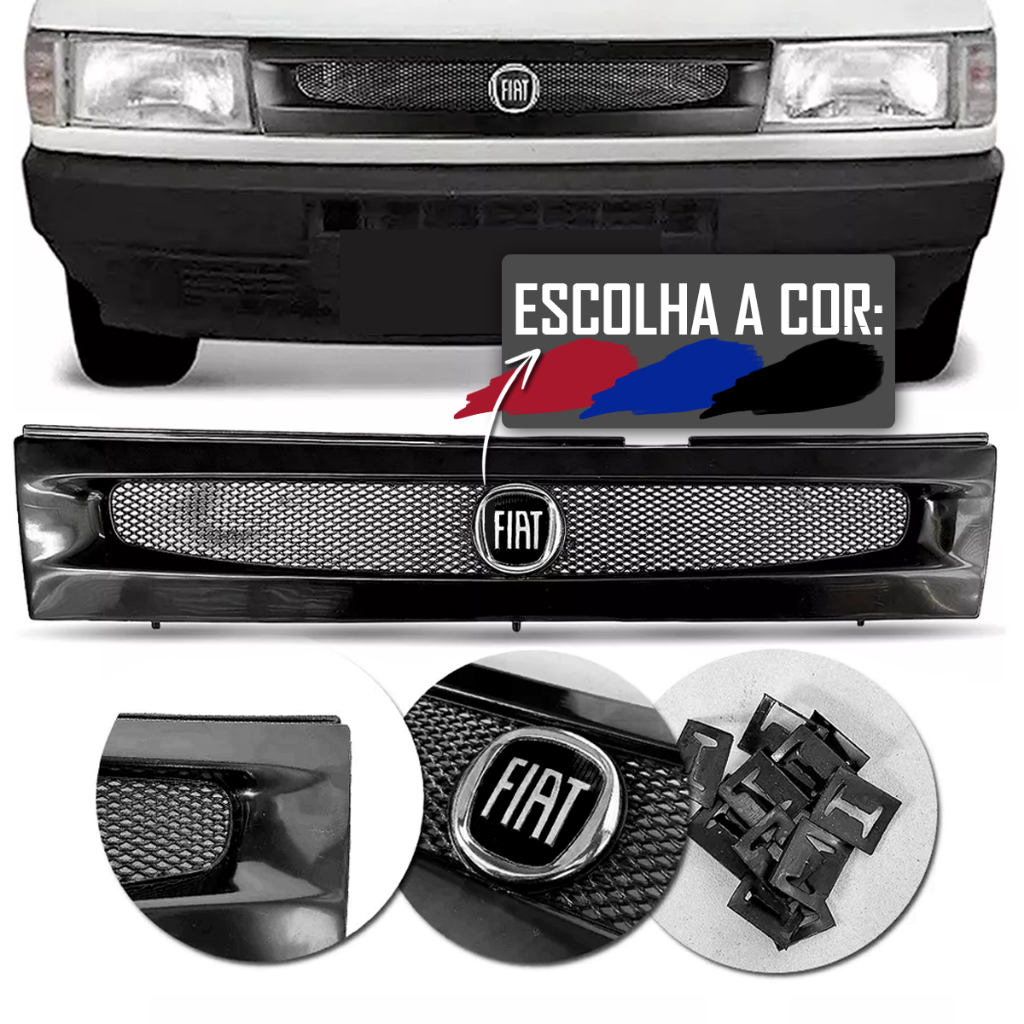 Grade Dianteira Radiador Fiat Uno Fiorino 1991 a 2004 + Emblema Logo Fiat Escolha a Cor Frente Baixa