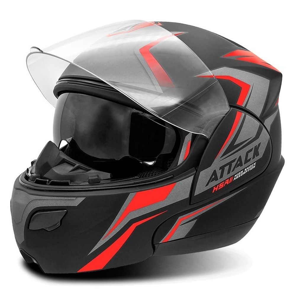 Capacete Moto Escamoteável Pro Tork Attack Hsa Viseira Cristal Sub Viseira Fumê Diversas Cores Forro Removivel Feminino Masculino Tam. 56 58 60 62