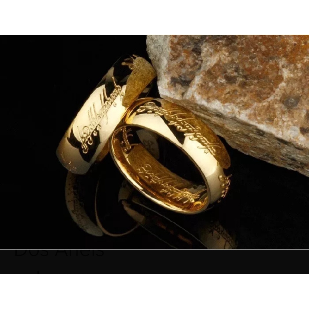 Par De Alianças 7 Mm Vem Cravada em 3d as Escritas O Senhor Dos Anéis + Aparador