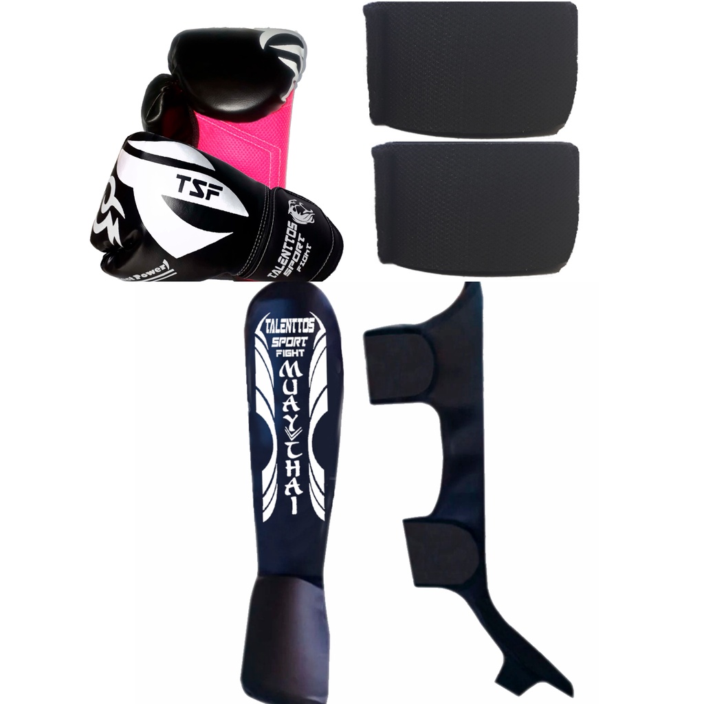 kit Muay Thai Boxe Kickboxing Pró Combate caneleira +luva+ bandagem