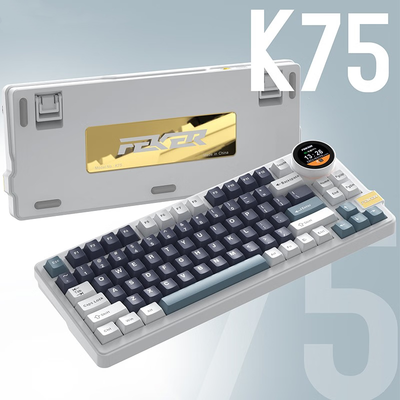 FEKER K75 Teclado Mecânico Sem Fio Com De 2.4 Ghz/BT 5.0/USB-C Montado Em Junta , 3 Modos Placa Hot Swappable , Tela LCD