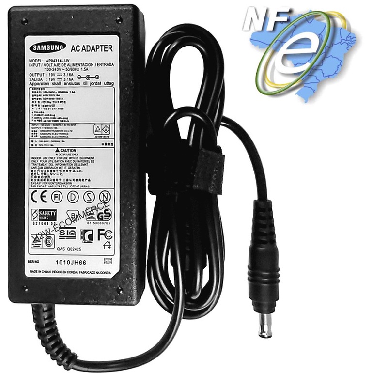Fonte Carregador Para Notebook Samsung, 19v 3.16a 60w Pino 5.5 X 3.0 Mm