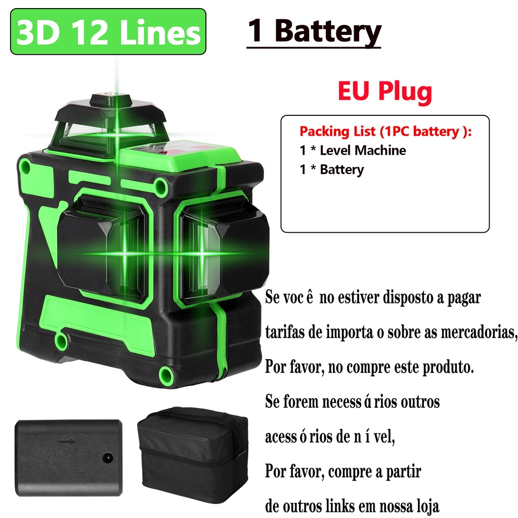 Nível a Laser Verde 12 Linhas 360° 3D – Precisão Profissional! 🔹