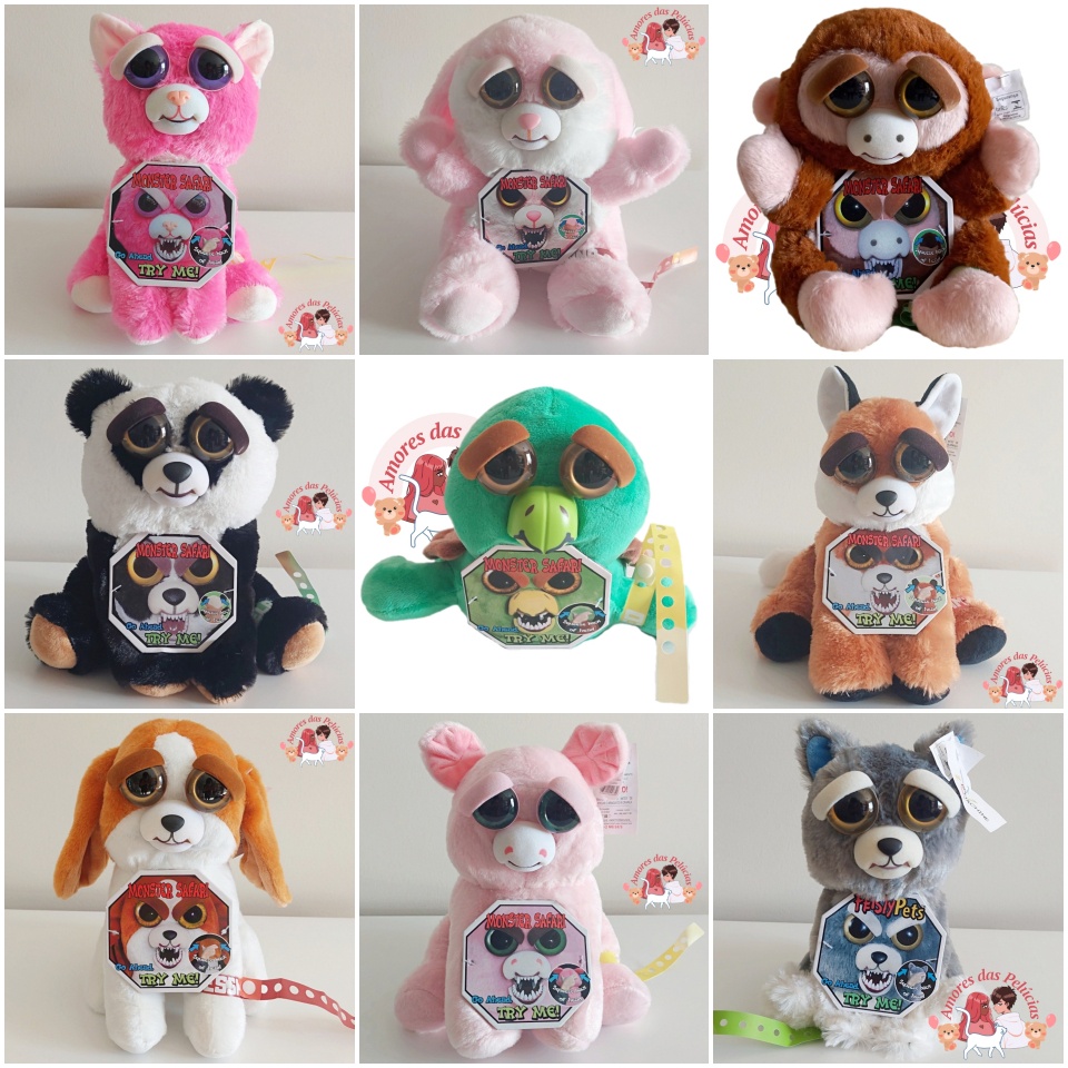 Coleção Feisty Monster Safari Brinquedo Pelúcia Marca BR Machine Rosto Articulado Gata Rosa Coelha Rosa Macaco Coelha Cinza Panda Tartaruga Porquinha Raposa Cachorro Basset Husky Hamster Coruja-Das-Neves Girafa Rena