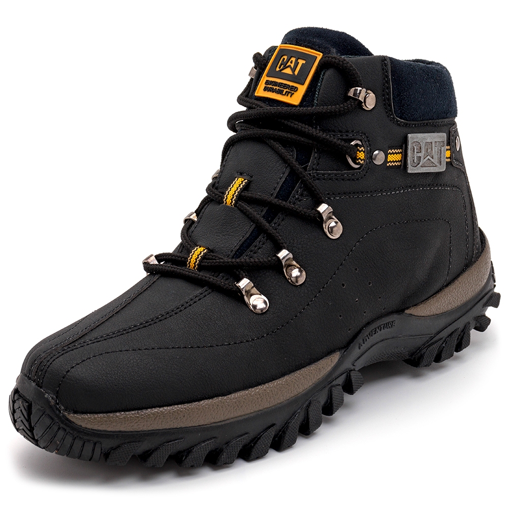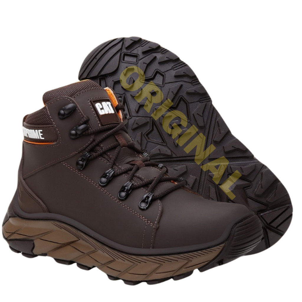 Bota Coturno Masculino Cat Couro Biqueira PVC com CA Segurança Trilha Trabalho Conforto