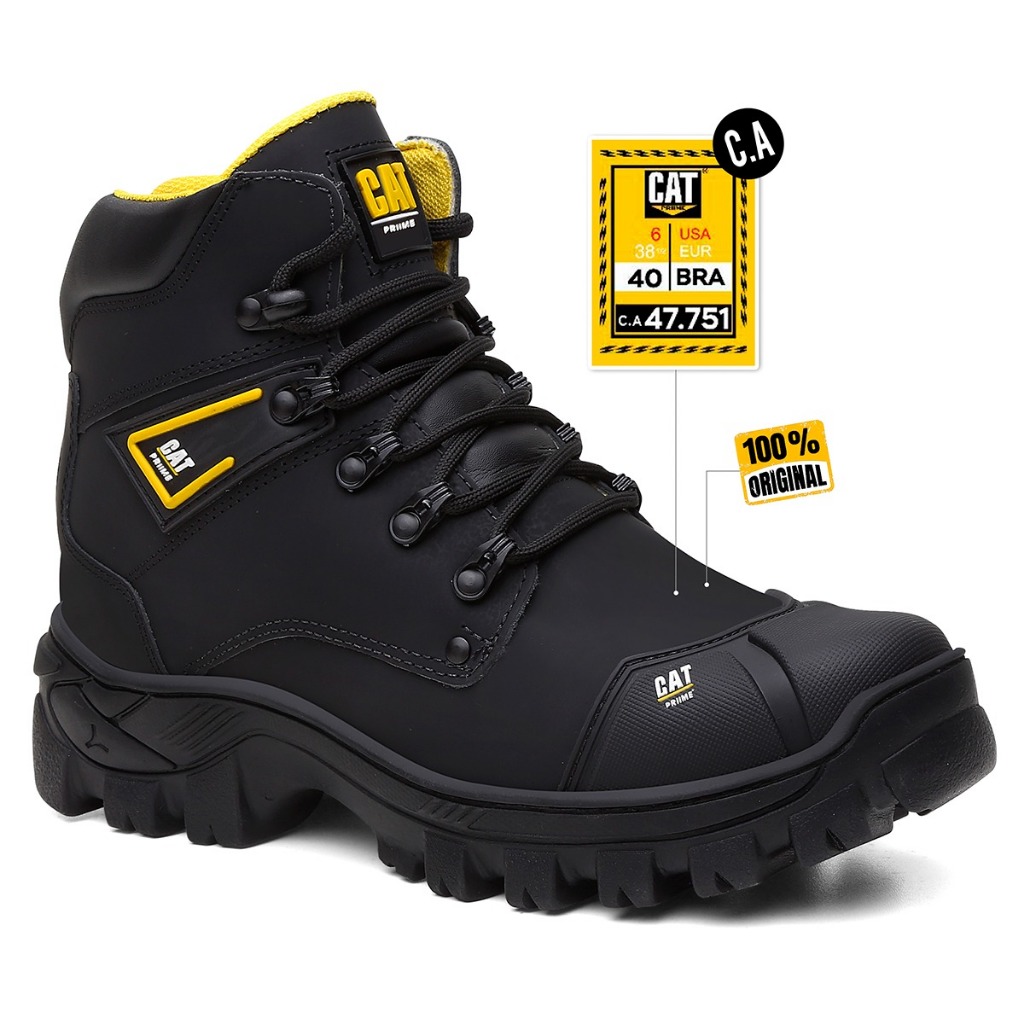 Bota Coturno Cat Masculino Couro Legitimo PVC com CA Segurança Trabalho Conforto