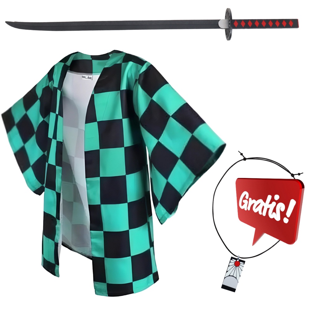 Espada Tanjiro Demon Slayer Kimono Cosplay + Colar Hanafuda