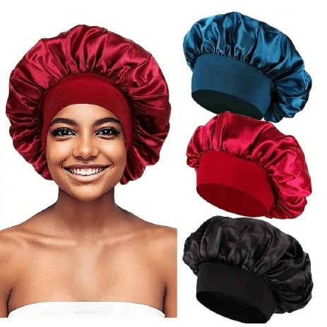 1 Peça Touca De Dormir De Aba Larga De Cetim Feminino E Envoltório De Cabelo, Adequado Para Uso Diário