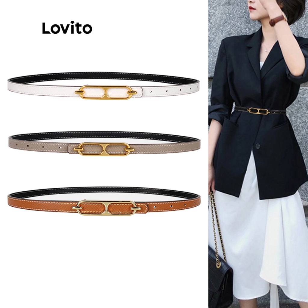 Lovito Casual Básico Poroso Ajustável Cinto De Uso Dupla Face Para Mulheres L46ED016 (Castanho/Cáqui Claro/Branco)