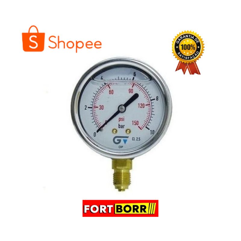 Manômetro De Pressão Com Glicerina 0 A 10 Bar 150 Psi