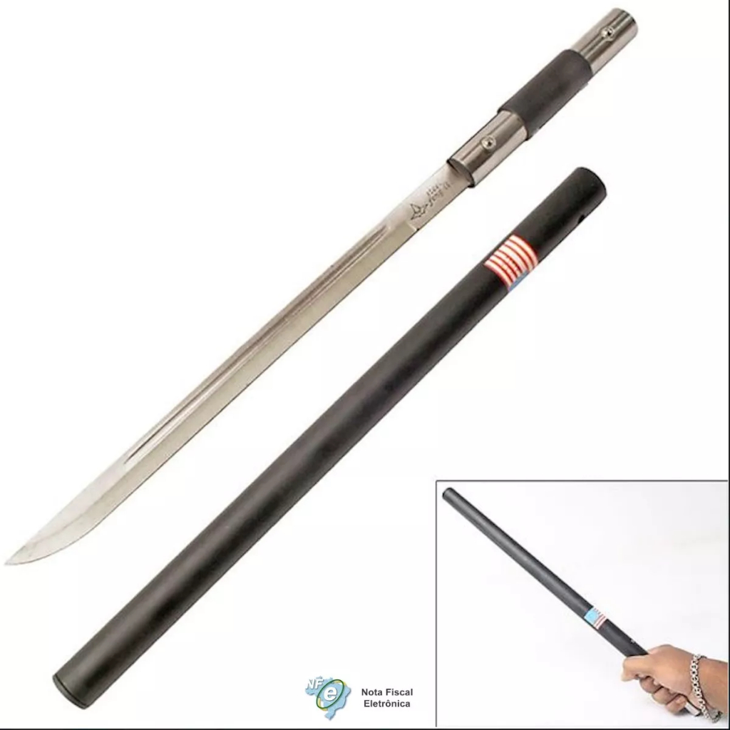 Bastão Faca Metal Espada Baioneta - 3 Em 1 - Tam.m - C/ Fio