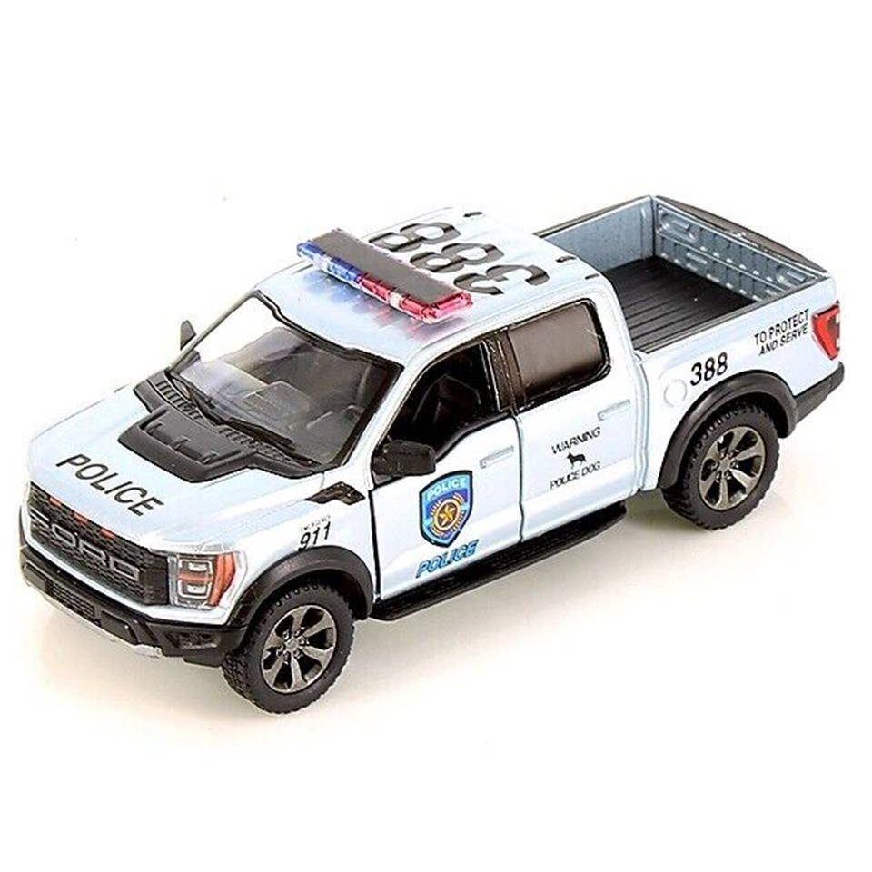 Miniatura Ford F-150 Raptor 2022 Kinsmart 1:46 Metal e Fricção Police Prata
