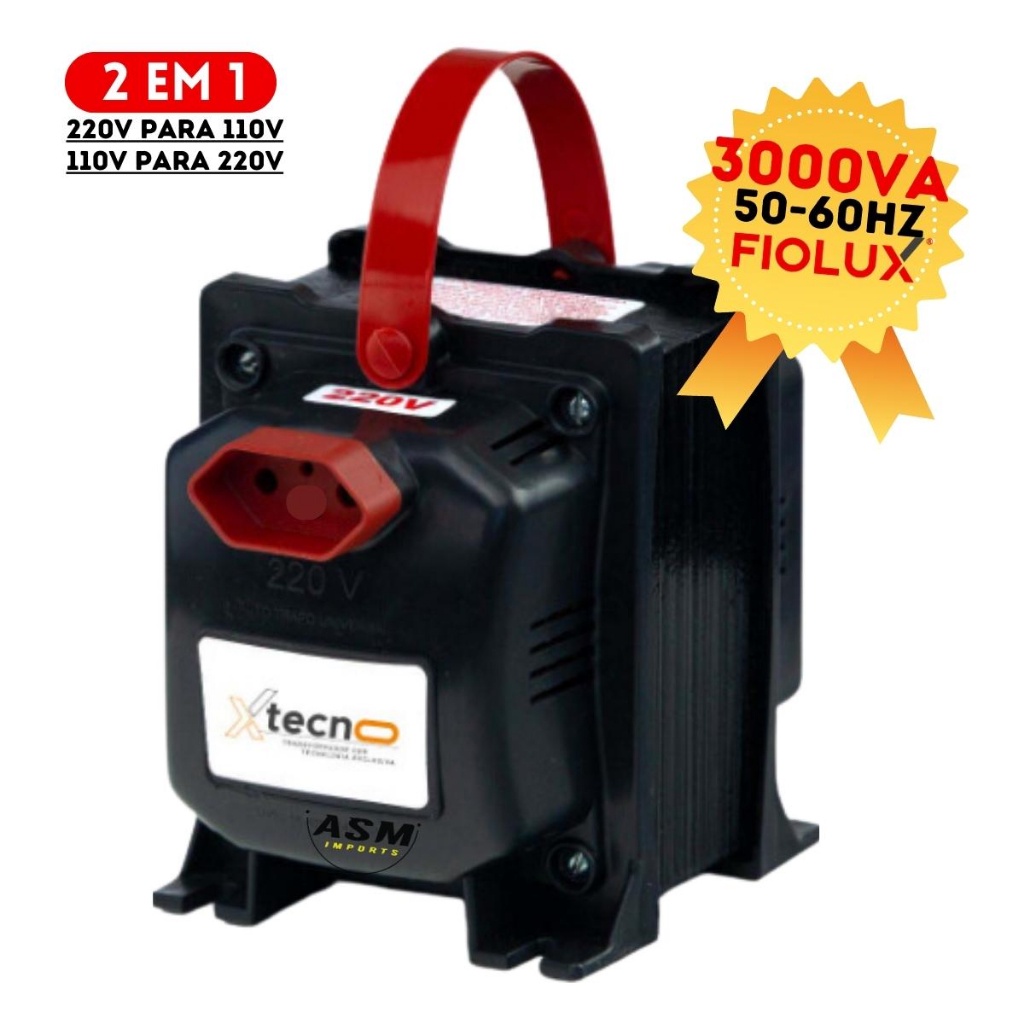 Auto Transformador Bivolt Conversor 3000VA 2 em 1 Tecno 220v 110v Fiolux com tomadas