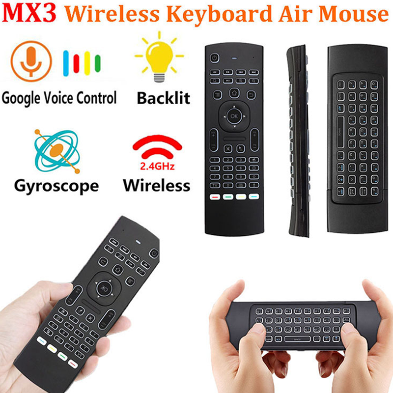 2.4G MX3 Air Mouse Mini Rato Sem Fio com Controle Remoto e Voz para PC e Android TV Box