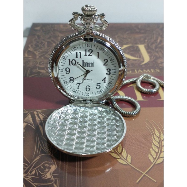 Relógio de bolso modelo antigo vintage retrô cor prata todo funcional