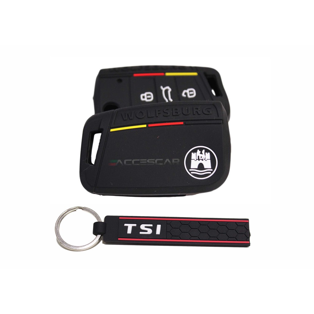 Kit Capa Silicone Chave Presencial Volkswagen Wolfsburg + Chaveiro TSI NOVO JETTA, NOVO GOLF, NOVO POLO, NOVA TIGUAN, T-CROSS, VIRTUS, NIVUS