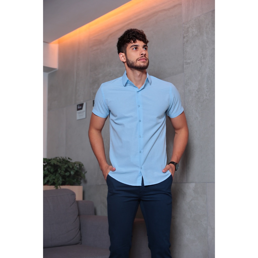 Camisa Social Masculina Manga Curta Slim Fit - Sem Bolso