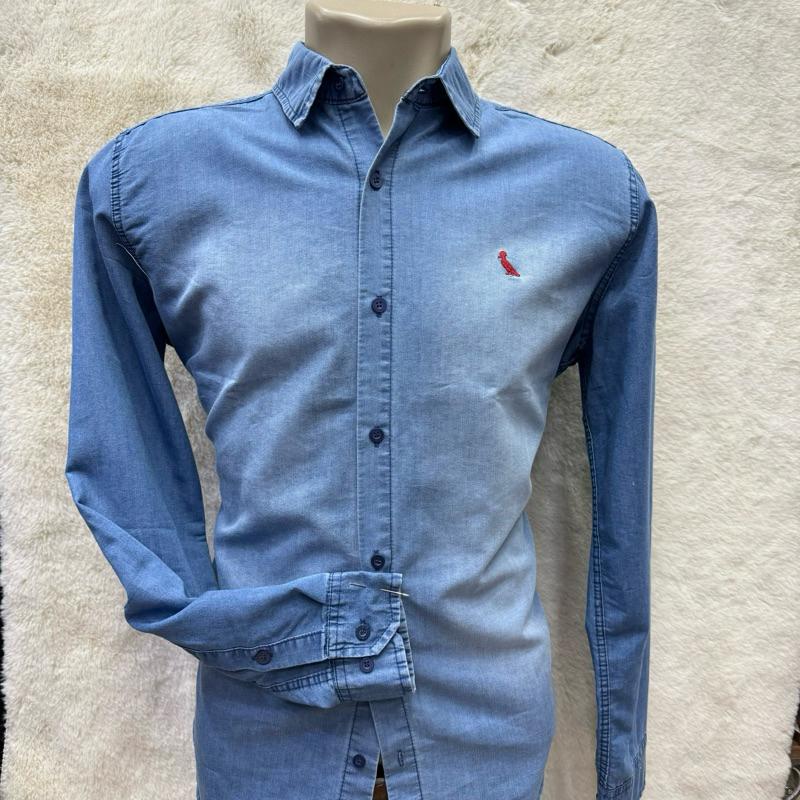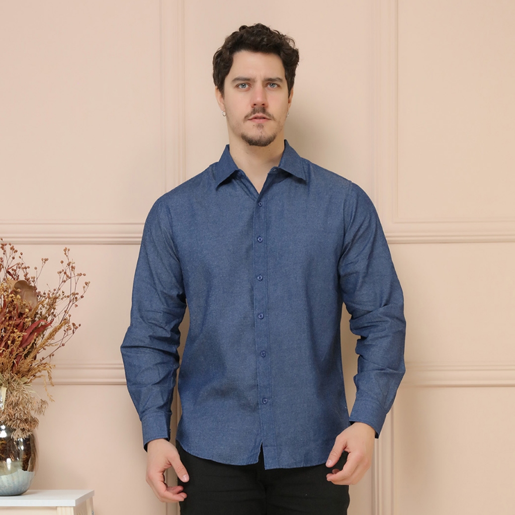 Camisa Social Manga Longa Jeans Masculina Sem Bolso