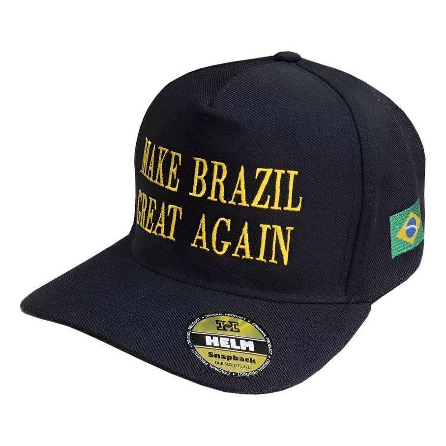 Boné Bordado Personalizado Make Brazil Great Again - Snapback Frente Americana Aba Curva Preto