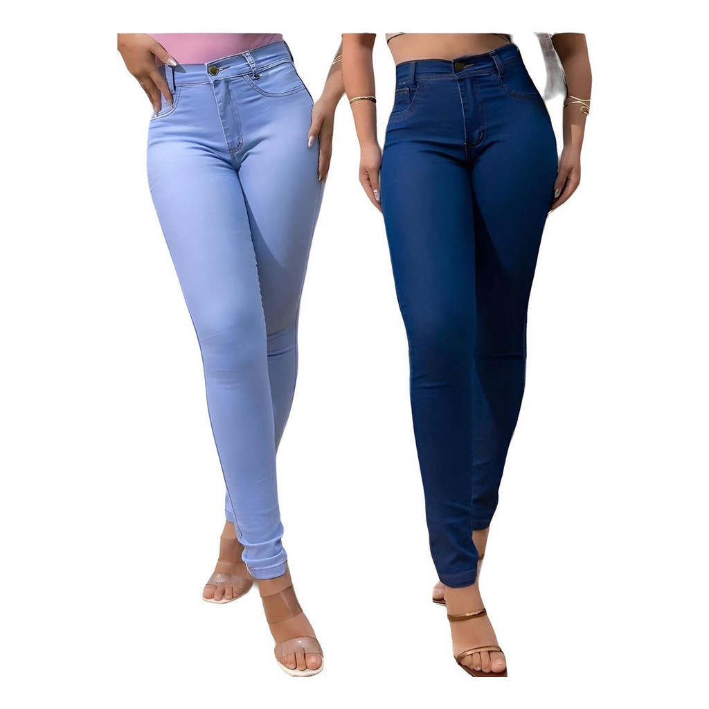 Kit 2 Calça Jeans Feminina Cintura Alta Lycra