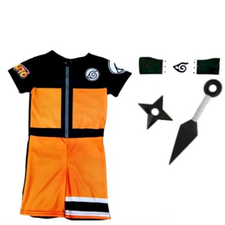 Kit Fantasia Infantil Naruto Completa Menino Masculina + Kunai e Shuriken + Bandana inox