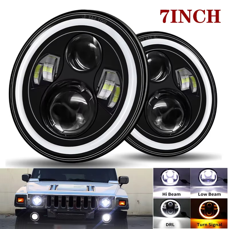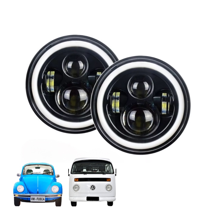 Kit 2 Farol 7 Polegadas Redondo Angel Eyes Defender Led Jeep Fusca Troller Beetle Kombi