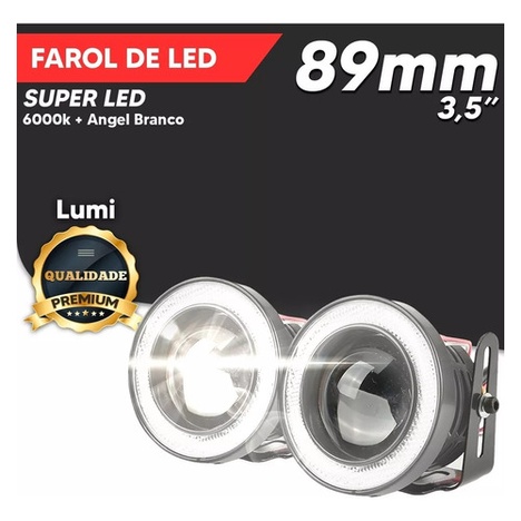 1 Kit Farol Universal Milha Led Angel Eyes Auxiliar 12v 89mm