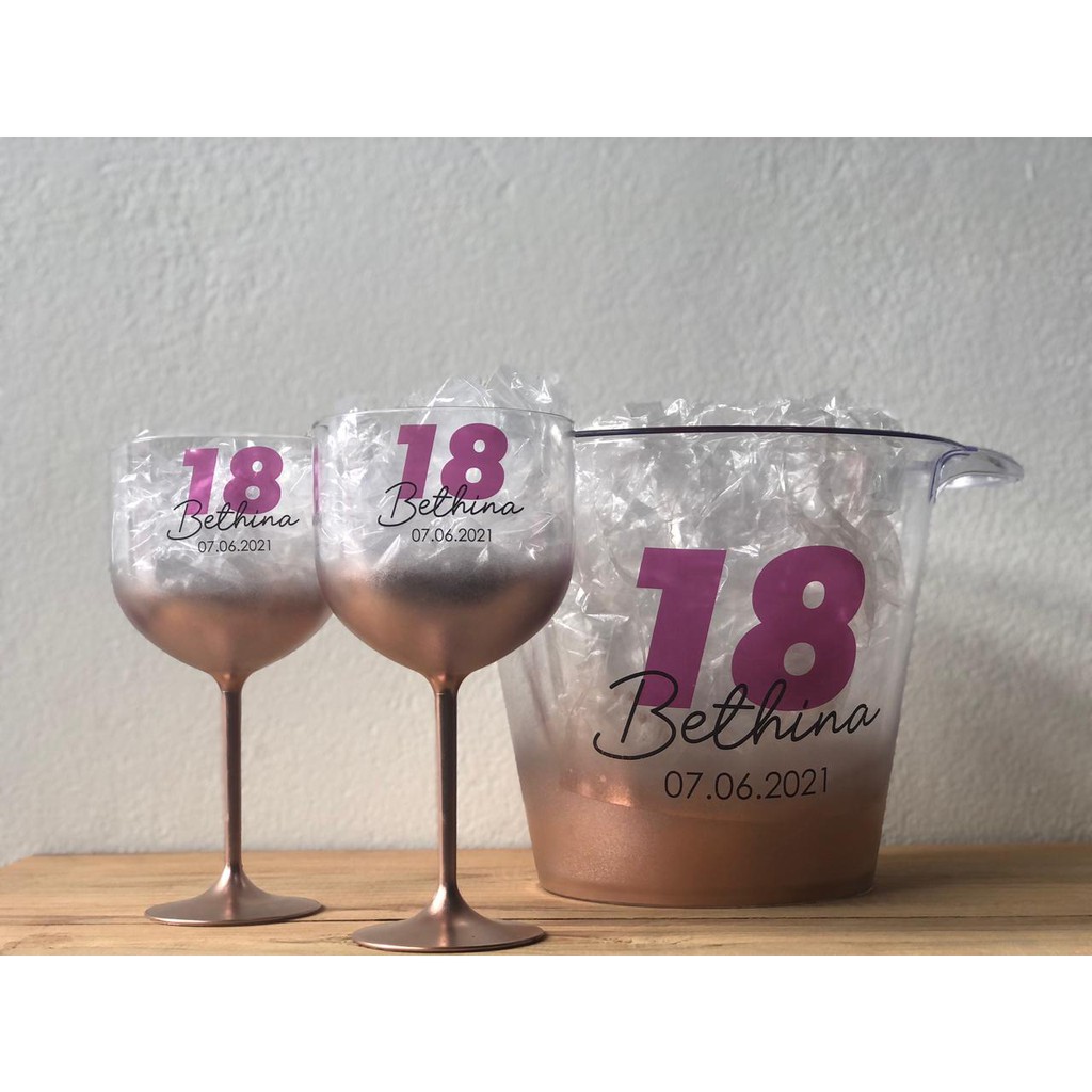 Combo 20 taças de gin 580ml degradê + 1 balde de gelo 5 L acrílico personalizados