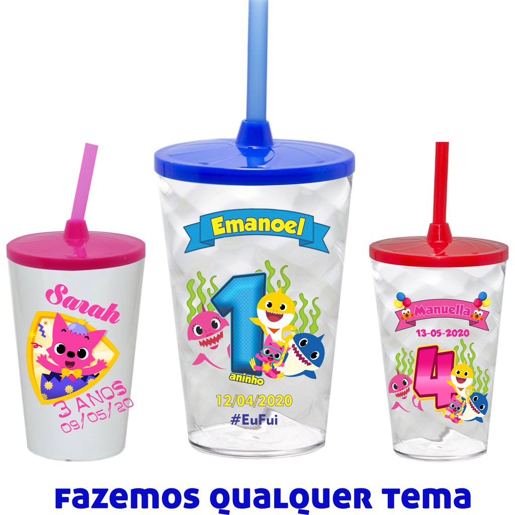 20 Copos Twister 500ml Personalizados Baby Shark