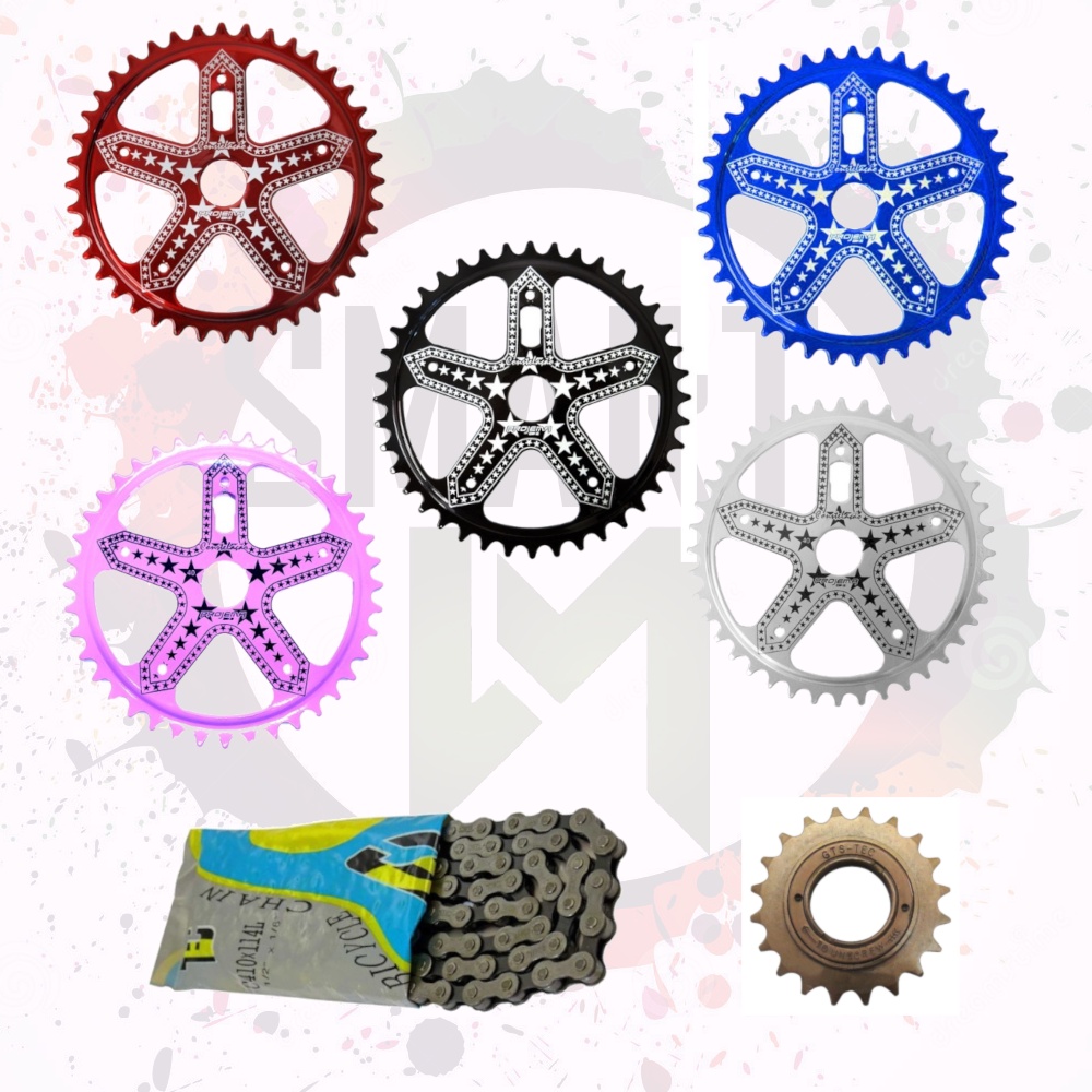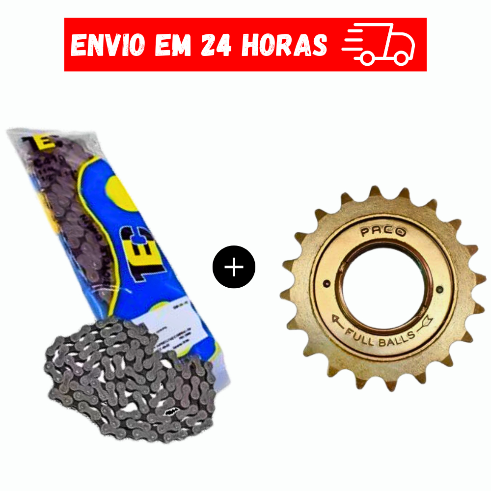 Kit Coroa Roda Dentada + Catraca Roda livre + Corrente Bicicleta Infantil Aro 20 24 Bike