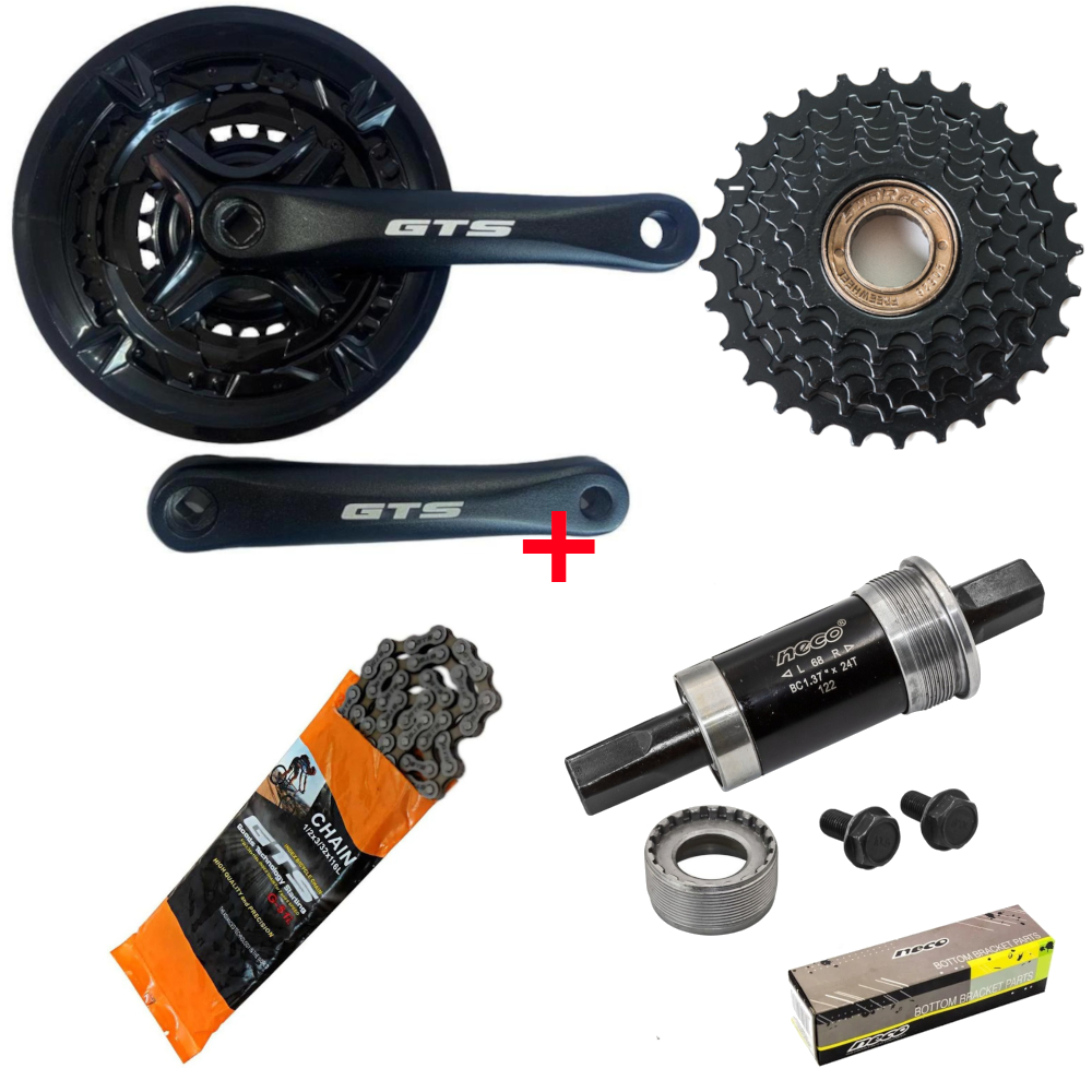 Kit Pedivela Coroa + Catraca + Movimento Central Selado Rolamentado 122mm + Corrente Bike 21v Aro 26 29 Mtb