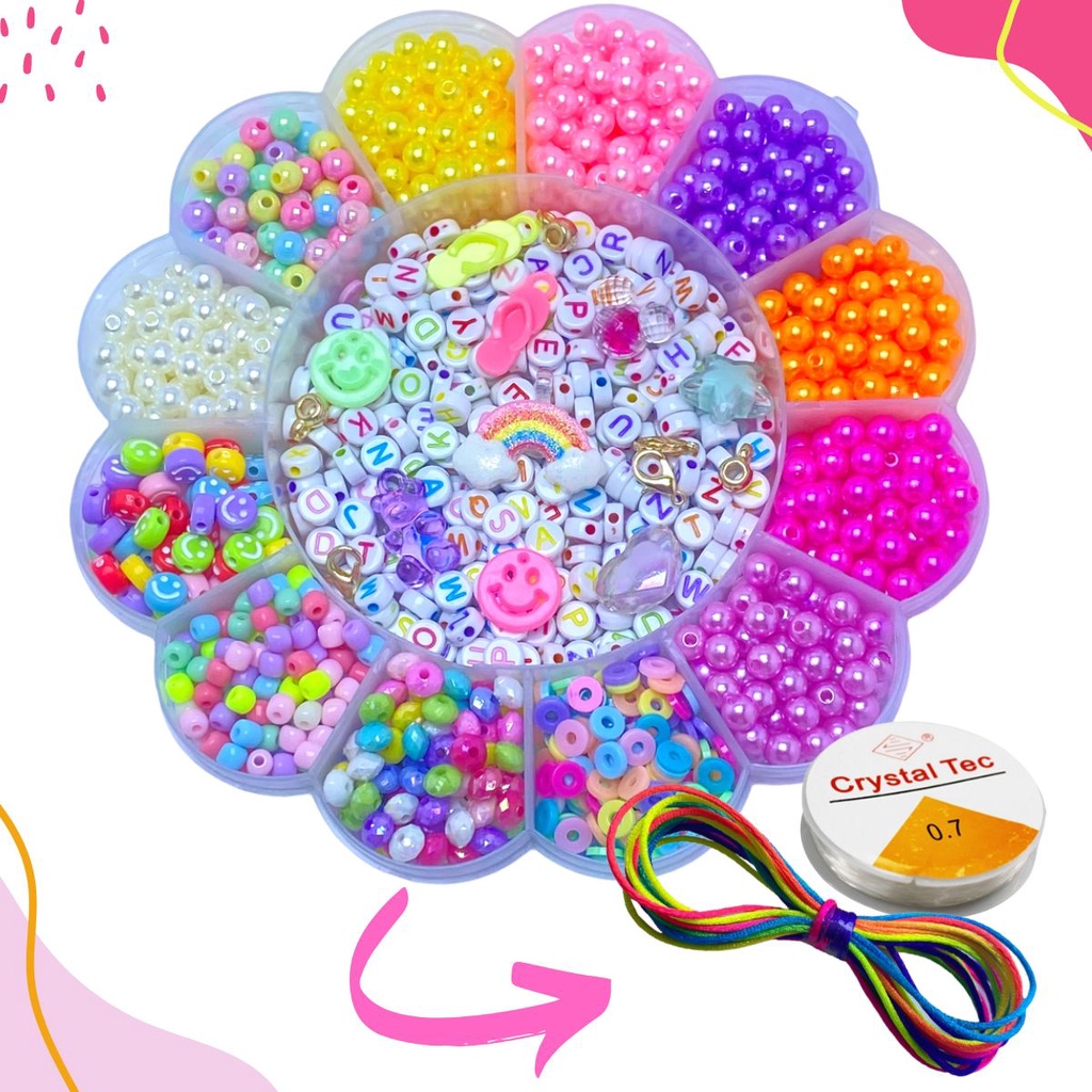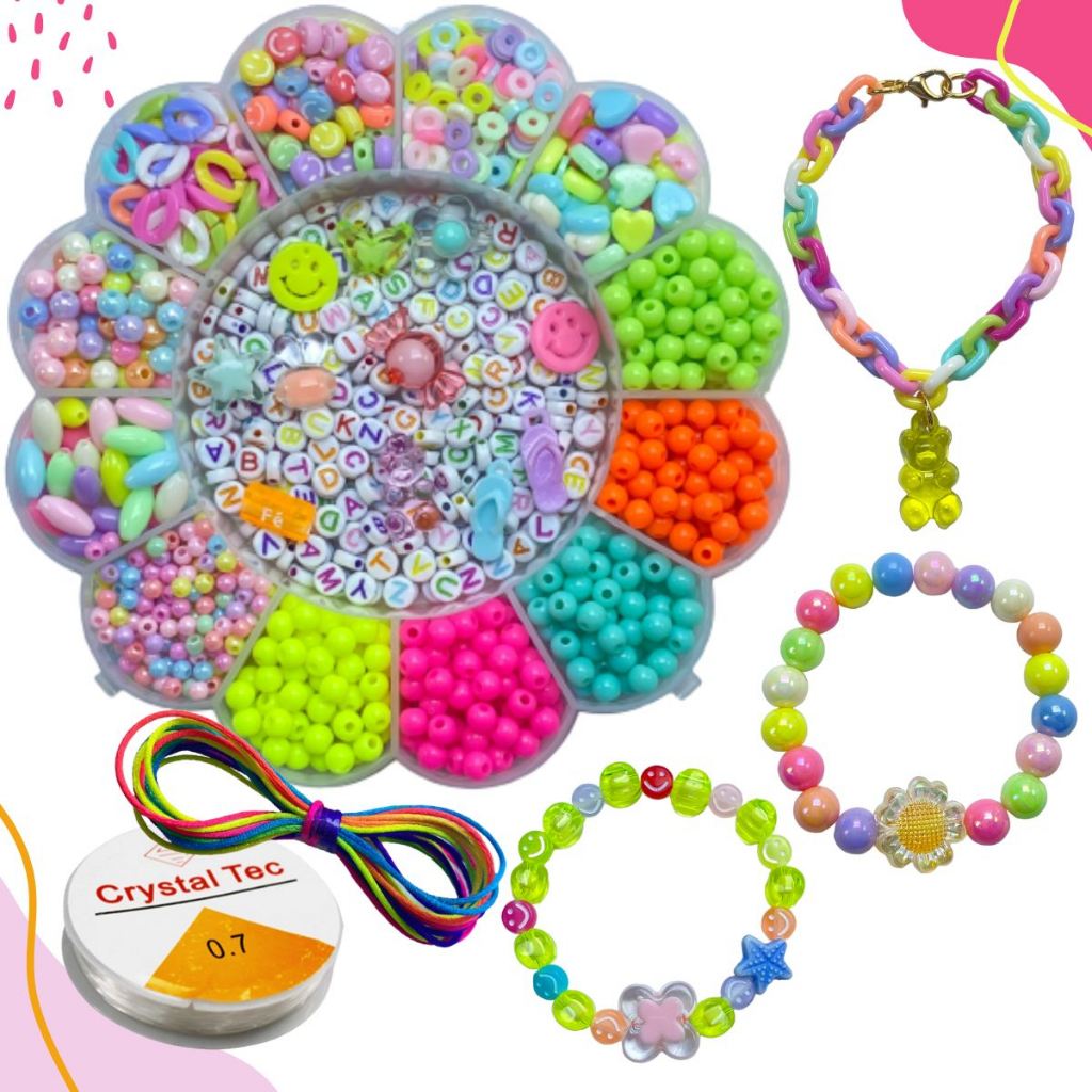 Maleta Kit Infantil Miçangas Para Pulseira 3200 Peças + Silicone