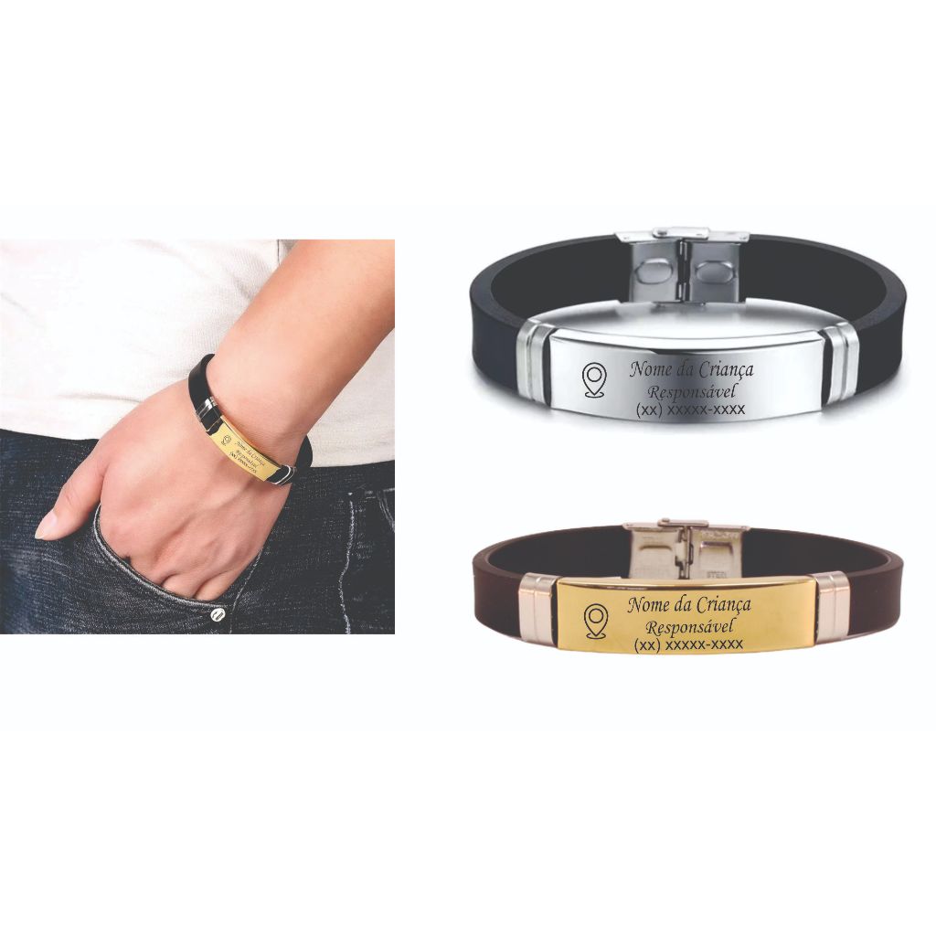 Pulseira Identificação Personalizada para Crianças em AÇO INOX / SILICONE