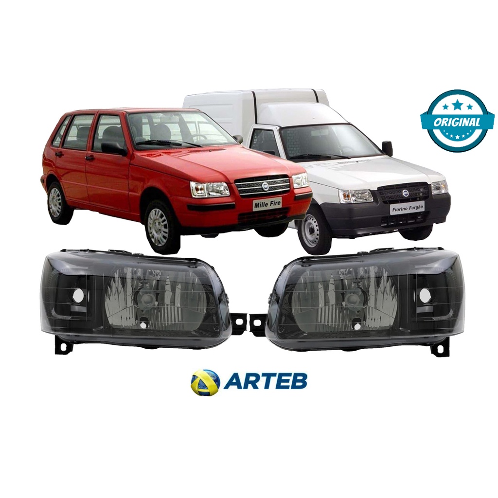 Par Farol Fiat Uno Fiorino Fire Original Arteb Mascara Negra 2004 2005 2006 2007 2008 2009 2010 2011 2012 2013