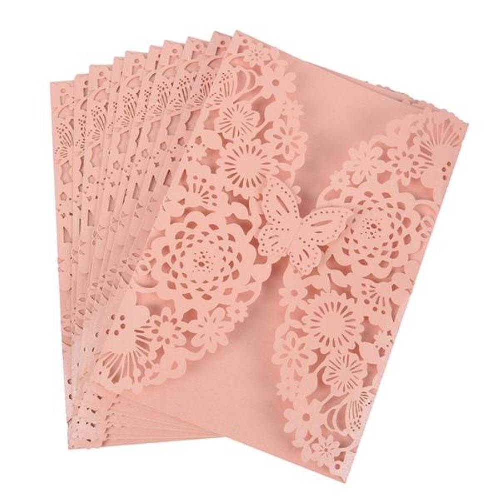 10pcs/pack Borboletas Delicadas Esculpidas Cartão De Convite De Casamento 5R Festa De Aniversário Romântico Envelope Convites 5x7in
