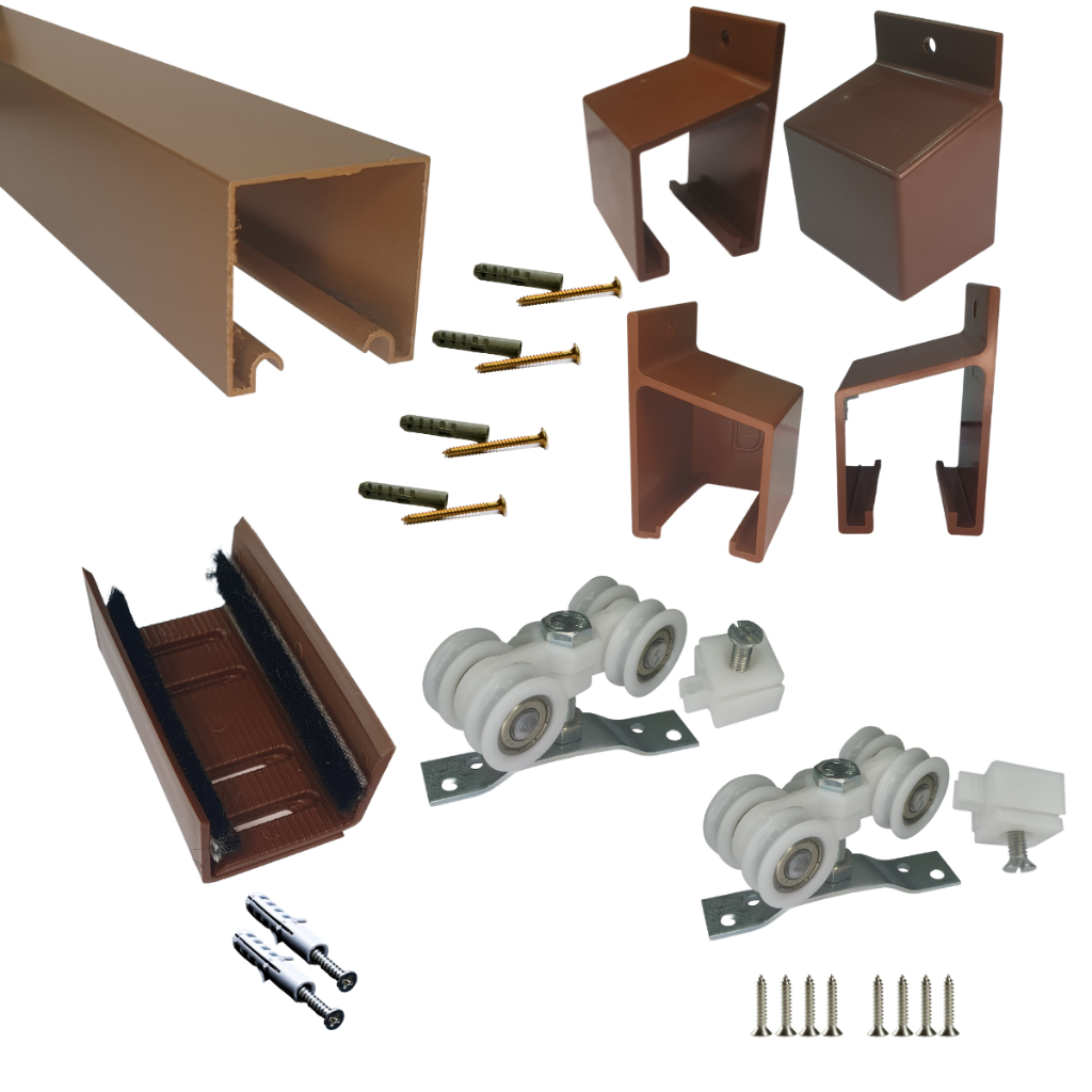 Kit Suportes Injetados para Porta de Correr Trilho Inteiro Cereja 1,20m + 1 Par de Concha