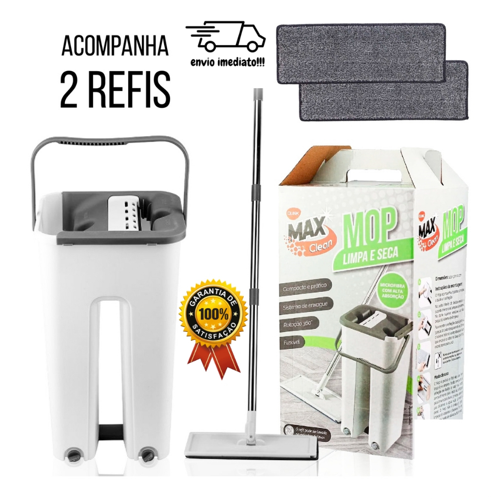 Mop Esfregão Flat para Limpeza Lava E Seca Profissional Multiuso Vertical+ 2 Refil Balde Rodo Magico mob mope